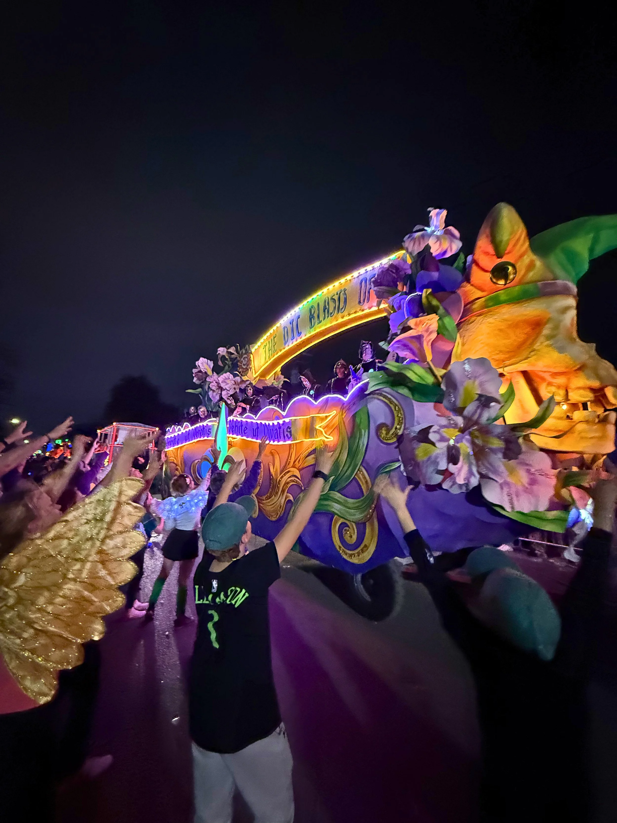 There are more than 70 parades during Mardi Gras, thrown by different social organizations or “krewes”, and we took our own crew to three this year: Hermes, Iris, and Tucks. Each krewe has its own fascinating history: the Krewe of Iris, for example, is the oldest and largest female Carnival organization and its members don white gloves and masks for their parade, while the Krewe of Hermes was founded during the Great Depression and became one of the first groups to revive their festivities after Hurricane Katrina.